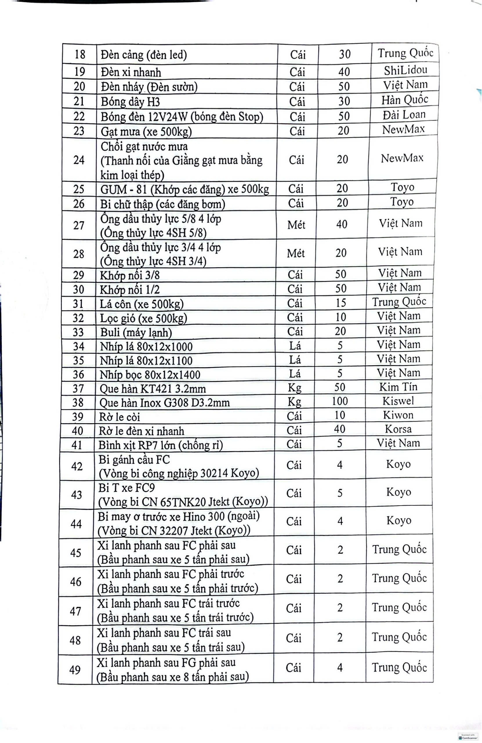 Thông báo mời chào cung cấp vật tư sửa chữa xe (TB số 50)